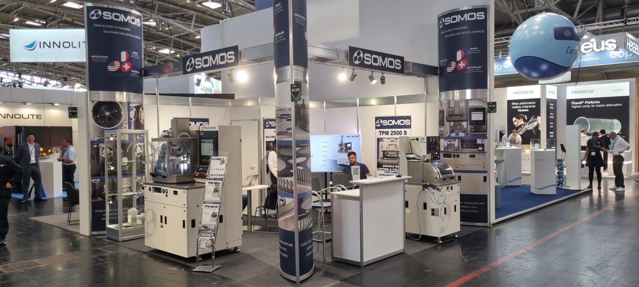 Le groupe Somos est reconnu depuis plus de cent ans pour la conception et la fabrication de machines de polissage et d’outillages pour l’optique de précision, l’aéronautique et l’horlogerie. Il m’a été donné de peaufiner son identité visuelle à travers des habillages de stands et des documents de communication.